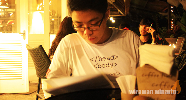 “Bakmi? Boleh. Nasi goreng juga. Sate ayamnya beli saja sepuluh kita buat berempat,” ucap saya sambil terus membolak-balik buklet menu, “Gurami goreng juga cocok. Sayurnya belum nih, mau kangkung dan buncis?”