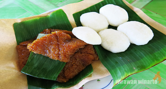 Jadah merupakan camilan manis yang terbuat dari beras ketan. Biasanya kebanyakan orang lebih lumrah memakannya dengan kombinasi tempe bacem atau tahu bacem. Namun saya sendiri lazimnya memakan jadah polosan, karena rasanya lebih ngena. Selain jadah, warung Mbah Carik ini juga terkenal gara-gara racikan wajiknya yang lembut.