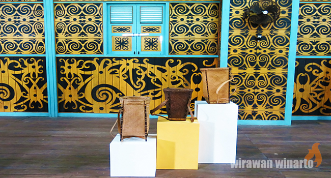 “Kerajinan tangan di sini bisa dibeli kok,” celetuk ibu yang berjaga-jaga itu ketika saya termangu menatap sebuah patung bertopeng hudoq yang berdiri di sudut ruangan. Pesona topeng Dayak ini benar-benar membuat setengah bagian paling ujung rumah betang ini terasa begitu mistis.