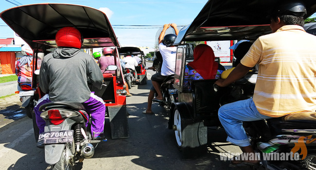 Pilihan utama barangkali memang bukan saja berjalan kaki. Lazimnya masyarakat Gorontalo berkeliling di atas bentor, becak bermotor. Perjalanan dengan bentor selain efisien, murah, juga mampu menjangkau sudut-sudut kota dengan kondisi jalan yang masih acak adut.