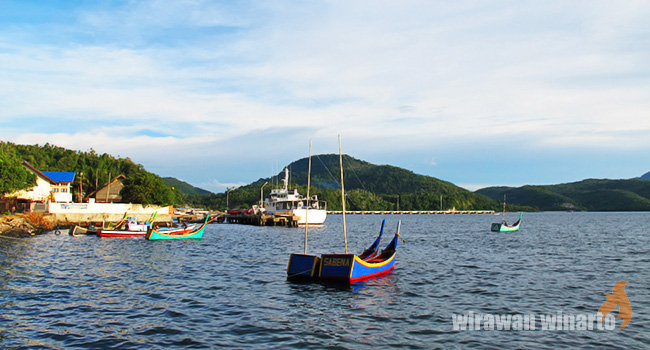 Sampan-sampan Aceh berbentuk segitiga dengan ujung mengerucut runcing ke atas. Badan sampan dicat dengan warna-warni ngejreng, membawa nuansa semarak perairan Sabang. Barangkali karena itu bulan puasa, saya tidak melihat satu pun sampan bersauh, semuanya sedang bersandar tanpa tuan di dermaga, hanya terhubung oleh masing-masing seutas tambang.